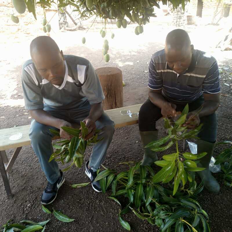 Scientist from the Institute of Environment and Agricultural Research of Burkina Faso (INERA), funded by USAID under the Current and Emerging Threats to Crops Innovation Lab, collaborated with the Association of Mango Producers of Burkina Faso (UNPM) and the Ministry of Agriculture in Burkina Faso, to evaluate the effectiveness of biological control agents.